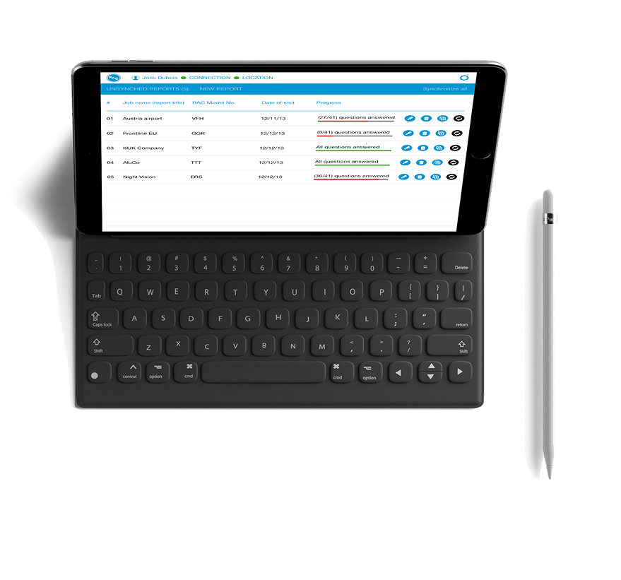 BAC’s large and globally spread customer base receives excellent after sales customer care in the form of regular visits by technicians for inspecting and reporting existing installations. Until recently this work involved mostly paper notes, digital cameras and manual processing.